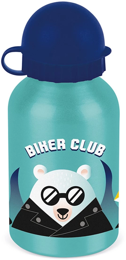Sortiment aus 6 kindgerechten Trinkflaschen aus Metall (3 unterschiedliche Modelle – Beauty (mit rosafarbenem Flamingo), Biker Club (mit Fuchs) und Dschungel. Fassungsvermögen: 300 ml.