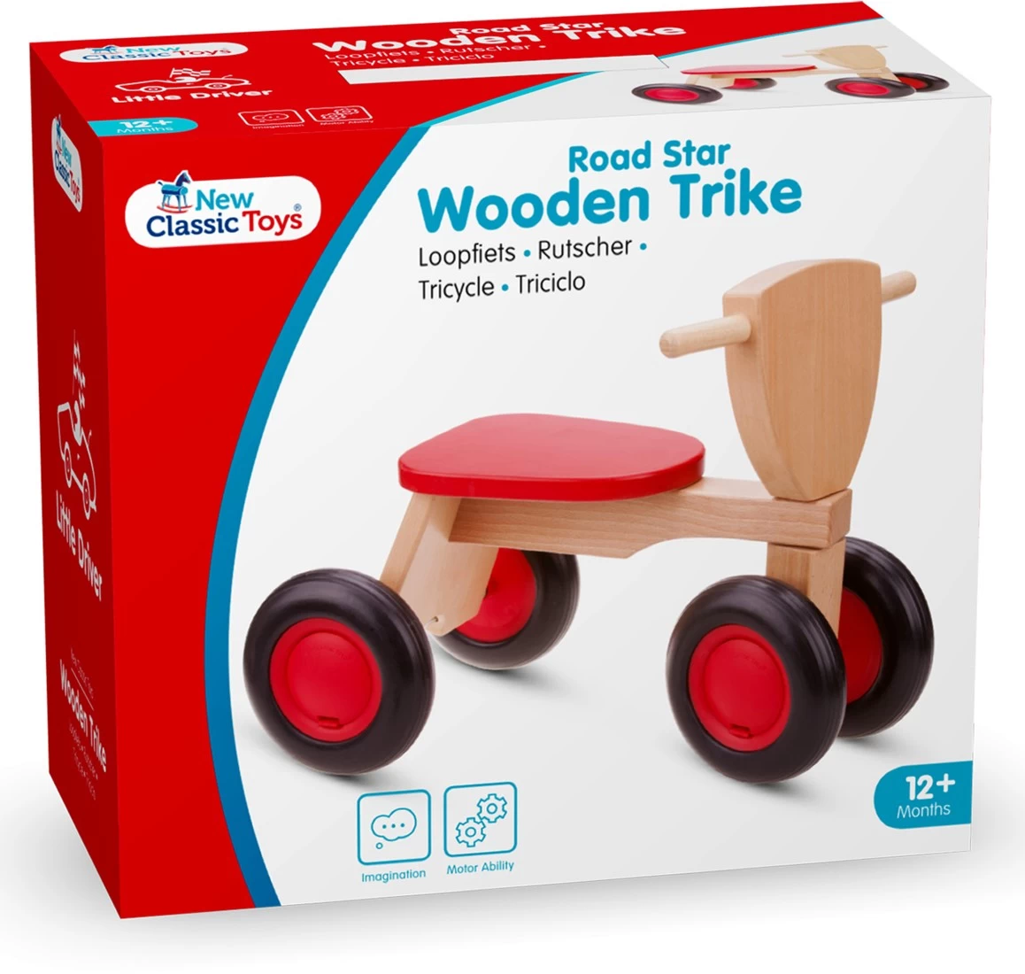 Neu Classic Toys Road Star Holz 4-Rad-Balance Fahrrad – Rot