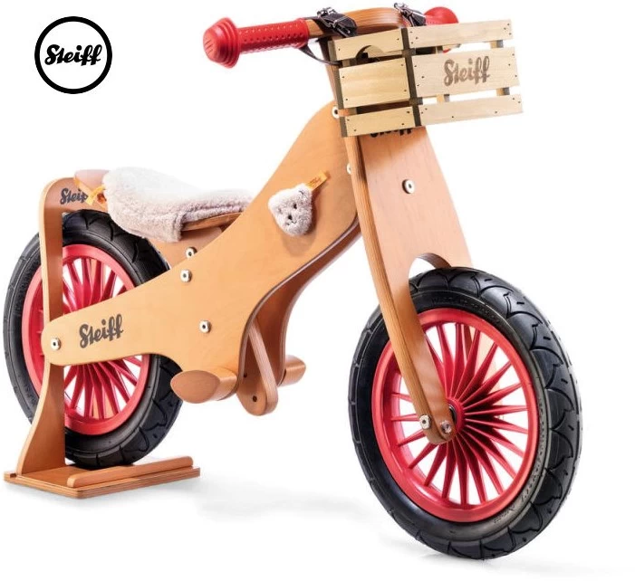 Das Steiff Laufrad Classic wird auch Übungsrad oder Laufrad genannt. Es bereitet Kinder ausgezeichnet auf das Fahren mit einem herkömmlichen Fahrrad mit zwei Rädern vor. Es ist eine pfiffige Alternative zu Stützrädern und gilt als bessere Lösung, wenn es darum geht zu lernen, wie man auf zwei Rädern im Gleichgewicht bleibt. Der Entwurf zur Konstruktion stammt von einem holländischen Designer und wurde inspiriert durch das Lebensgefühl der holländischen Fahrradfahrer, nämlich mit dem Steiff Laufrad Classic ein umweltfreundliches, zukunftsweisendes und qualitativ hochwertiges Laufrad anzubieten, das Kinder und ihre Familien zu einem aktiven, kreativen und abenteuerlustigen Lebensstil inspiriert. Beim Steiff Balance Bike Classic handelt es sich um ein handgefertigtes, preisgekröntes Laufrad aus Holz in einem klassischen Look, der sowohl durch das ursprüngliche Logo als auch den Bärenkopf aus Plüsch als Absender der Marke Steiff inspiriert wurde. ACHTUNG! Nur mit Schutzausrüstung benutzen. Nicht im Straßenverkehr verwenden. Zusammenbau nur durch Erwachsene. Lenkerhöhe: 54 cm; Sitzhöhe: 33 – 41 cm (verstellbar); Hauptmaterial: Holz; Griffe und Räder: Kunststoff; Plüsch: 100 % Polyester